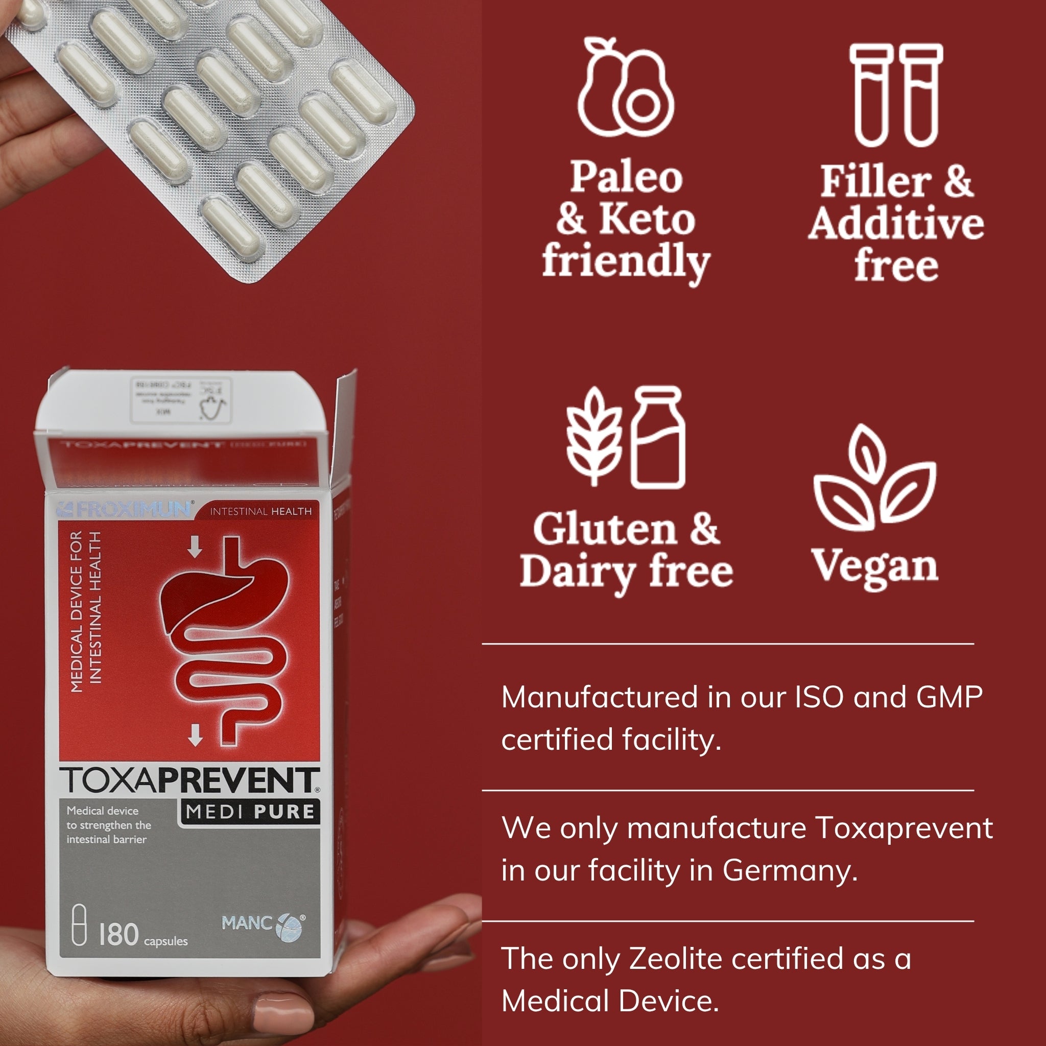3 x Toxaprevent Medi Pure 180 Capsules (The red box)